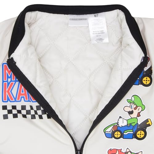 Nintendo Mario Kart Boys Varsity Bomber Jacket Zip-Up Super Mario Graphic Print Jacket for Kids and Toddlers Casual Fashion Coats (Tan, Size 10/12)
