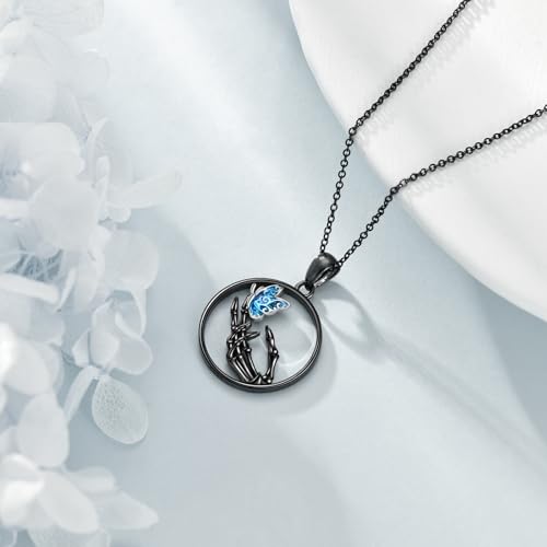 Skull Necklace Sterling Silver Vintage Gothic Skeleton Pendant Necklace Jewelry Gifts for Women Girls Men Skull Necklace for Men Butterfly Necklace for Women