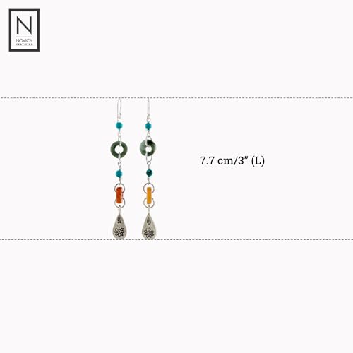 NOVICA Artisan Handcrafted Jade Silver Dangle | Turquoise Dangle | Beaded | Fine Sterling Silver | Multi Gem Earrings For Women