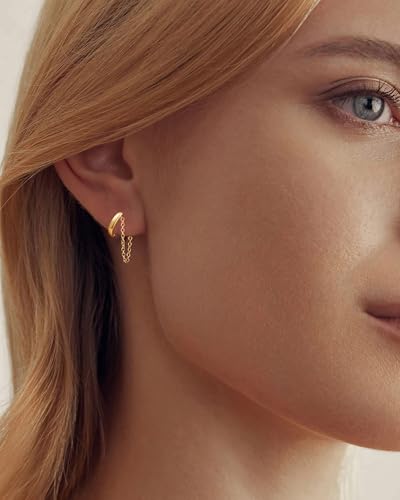Gold Chain Earrings for Women, Minimalist Small Dangle Chain Huggie Hoop Earrings for Women