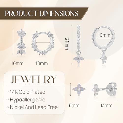 Material: Sterling SilverMetal type: No Metal TypeBack Finding: Clutchless, Hinged Hoop, Push BackEarring design: HoopGem type: No GemstoneItem type name: Hoop EarringsSterling Silver Hoop Earrings For Women : You will be receiving three pairs of opal earrings in different styles. These stacked earrings offer a unique and eye-catching look that you can wear either alone or together. You can even mix and match them with other earrings, enjoy DIY fun with your jewelryHypoallergenic Earrings For Sensitive Ears : 14k white gold plated handpicked brass to ensure a long-lasting finish that is tarnish-resistant, nickel-free, lead-free, and hypoallergenic, we only make high-quality and attention to detail.That makes them ideal earrings for who have sensitive earsSterling Silver Earrings For Women : To enhance the overall comfort of wearing, these delicate earrings have been carefully designed with a suitable size. The inner diameter of the small hoop earrings measures 10mm, making it an ideal size.And the cubic zirconia earring studs needle length measure 13mm, ensuring a perfect fit for any type of ear lobeSurprising Present for Women : charming opal earrings set perfect for women, mom, sister, fiancee, family or friend. These exquisite earrings are a thoughtful present perfect for all dress up and any occassions.e.g:Valentine's day, Mother's day, Birthday, Wedding, Anniversary, Engagement, Graduation, Dating Christmas or any holiday and Daily LifeAfter-Sales Service : QUINBY JEWELRY is committed to provide you with good services with 90 days money back or free replacement. If you have any questions about the earrings set, please feel free to contact us,we will provide you a satisfactory solution in 24 hours Perfect for everyday use. premium materials and excellent craftsmanship ensure long-lasting durability.