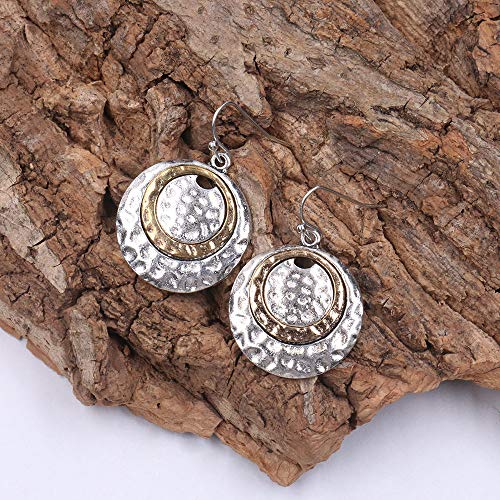 D.Rosse Handmade Ethnic Boho Retro Gold Matte Small Round Circle Dangle Drop Earrings Vintage Silver Hoop Hook Earrings for Women Girls Statement Jewelry