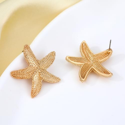• one-of-a-kind DESIGN STARFISH EARRINGS: You will grab a pair of shining starfish stud earrings. The simulated surface is gold-plated and extremely shiny. The sunlight on the beach reflects the dazzling light and you will be the focus of people