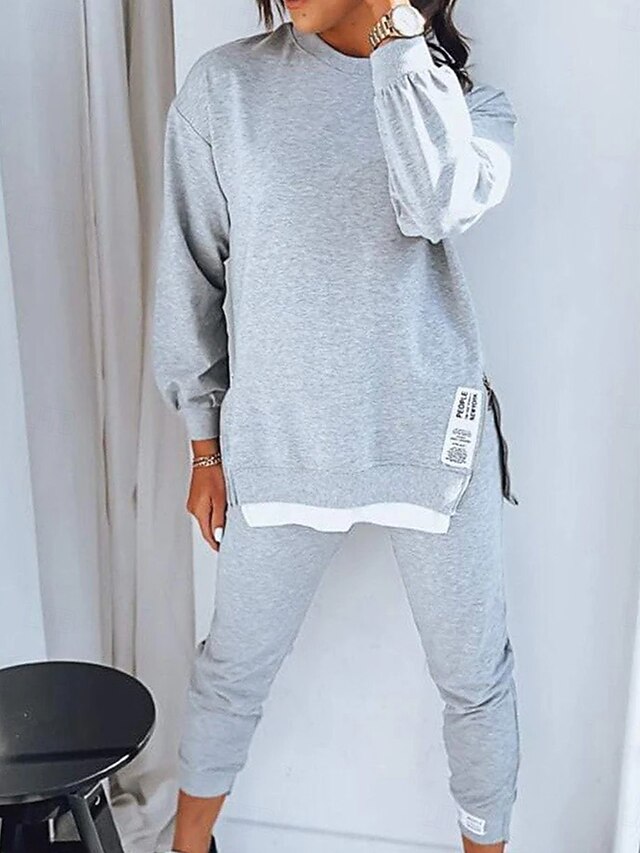 More information about Women's Streetwear Daily T Shirt Chinos Long Sleeve Crew Neck Solid Color Patchwork Outdoor Office Black Beige Gray Spring & Fall Regular Fit