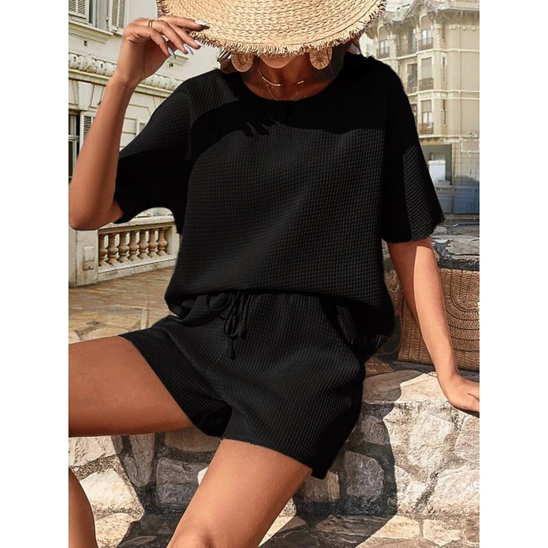 This Women's 2 Pieces Fashion Streetwear Daily Shorts Sets Short Sleeve Crew Neck Solid Color Drawstring Casual Daily Black White Pink Summer Loose Fit combines elegant design with practical functionality. Every detail has been carefully considered to ensure you get the finest possible experience. The supreme construction means this product will serve you well for years to come.