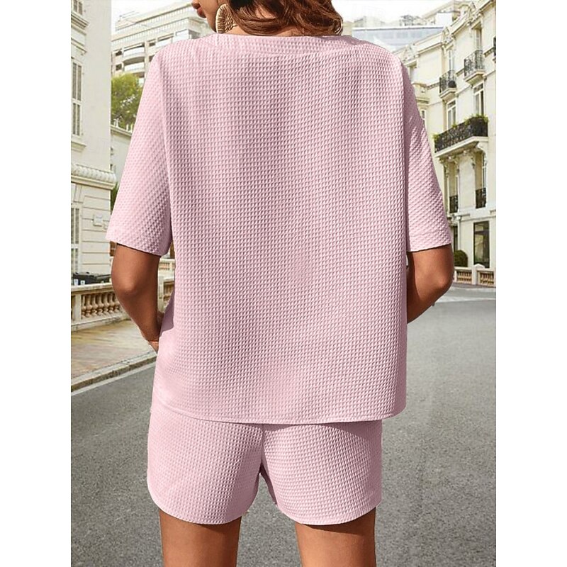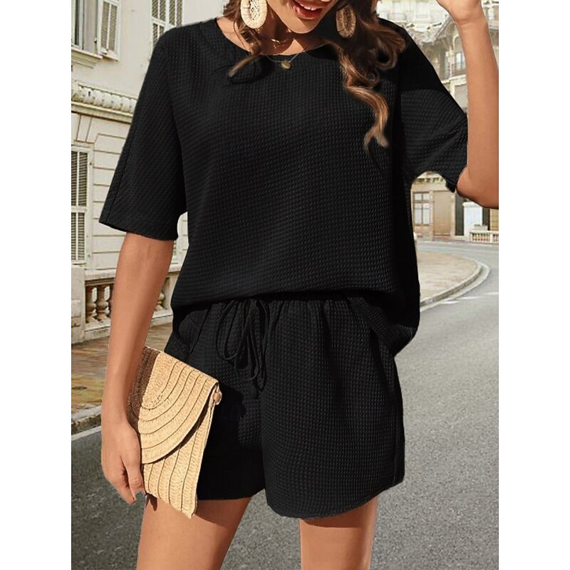 Why Choose Women's 2 Pieces Fashion Streetwear Daily Shorts Sets Short Sleeve Crew Neck Solid Color Drawstring Casual Daily Black White Pink Summer Loose Fit?