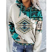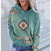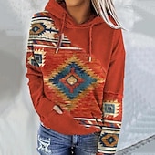 Women's Hoodie Sweatshirt Pullover Geometric Vintage Ethnic Street Casual Front Pocket Vintage Ethnic Neon & Bright Hoodie Long Sleeve Top Micro-elastic Fall & Winter Comfrt Breathable gentle Fabric