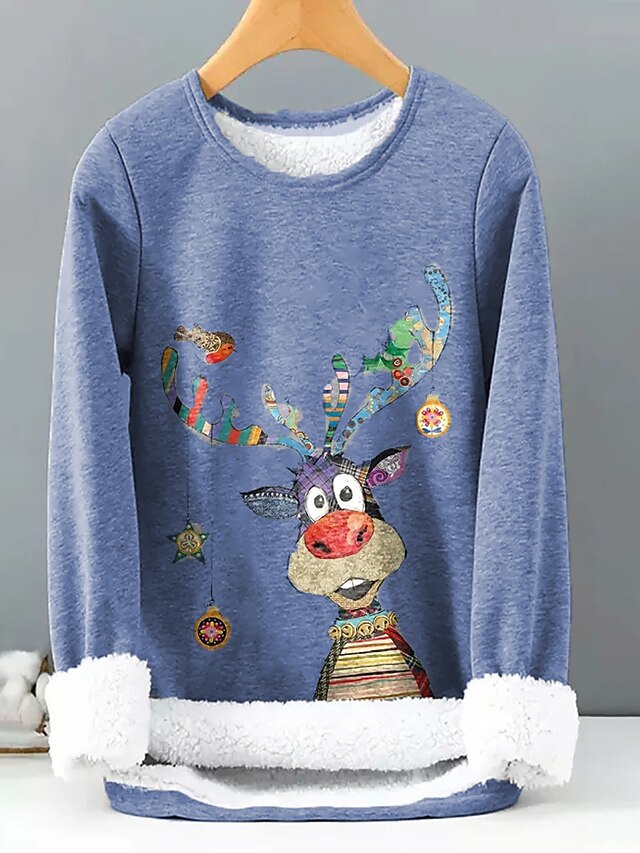 Why Choose Women's Fleece Lined Pullover Sweatshirt Pajamas Reindeer cozy Funny Fuzzy Long Sleeve Round Neck Crewneck Long Tops Christmas Casual Sports Black Yellow Dark Pink Red Blue Fall & Winter?