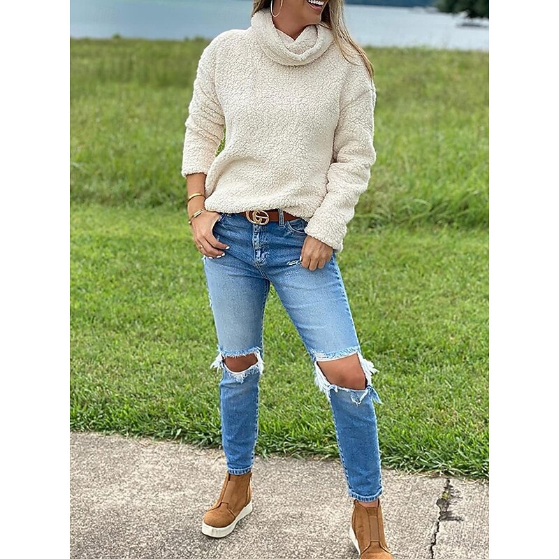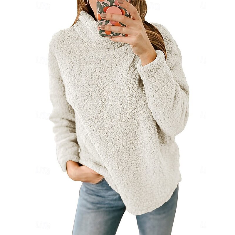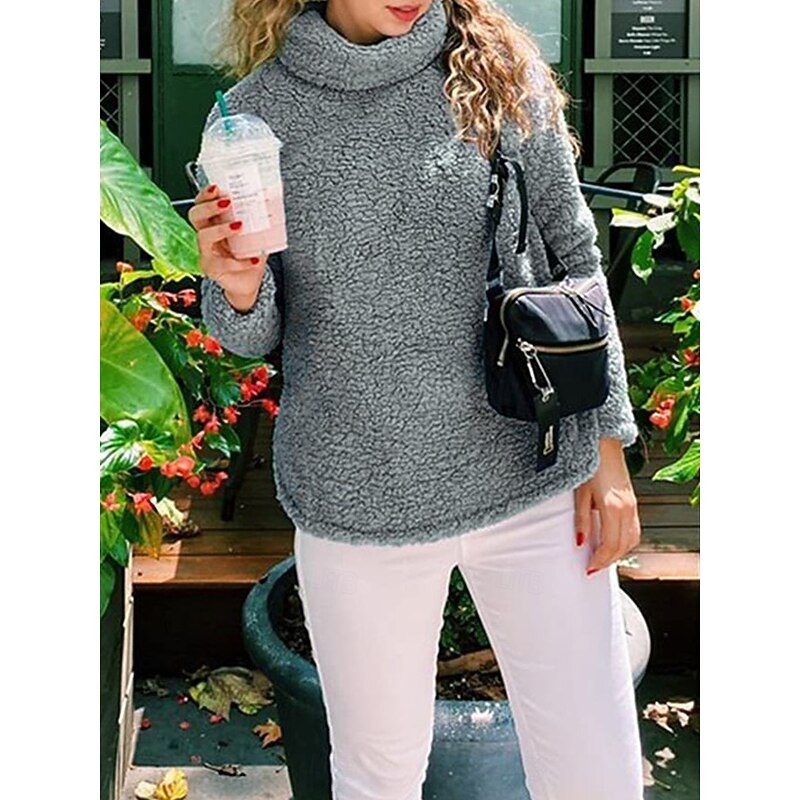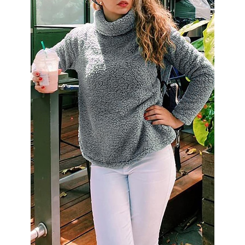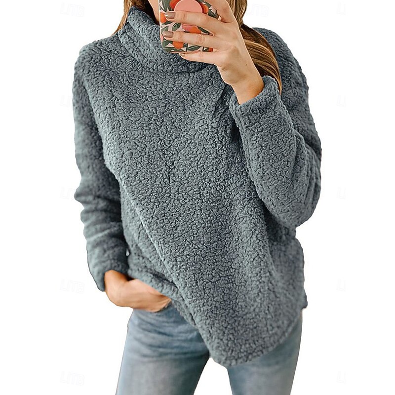 trending ! Women's Sweatshirt Casual Sherpa Plain Street Dailywear Turtleneck Print Long Sleeve Green Beige Gray Fall Winter