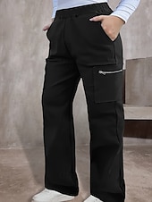trending ! Women's Cargo Pants Slacks Casual Full Length Natural Plain Zipper Pocket Elastic Waist plush Street Holiday Daily Wear Black Fall Regular Fit