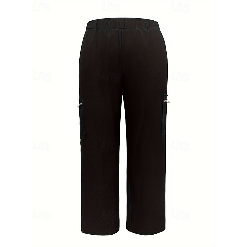More information about Women's Cargo Pants Slacks Casual Full Length Natural Plain Zipper Pocket Elastic Waist pleasant Street Holiday Daily Wear Black Fall Regular Fit