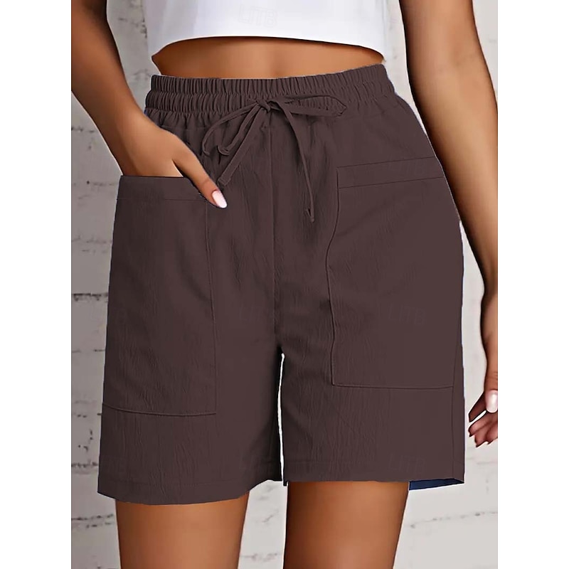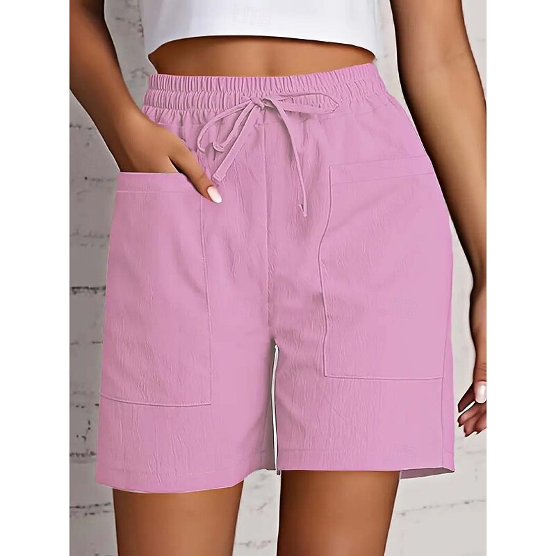More information about Women's Slacks Comfort Casual / Sporty Short High Waist Plain Drawstring Casual Daily carmine Apricot Black White Summer Regular Fit