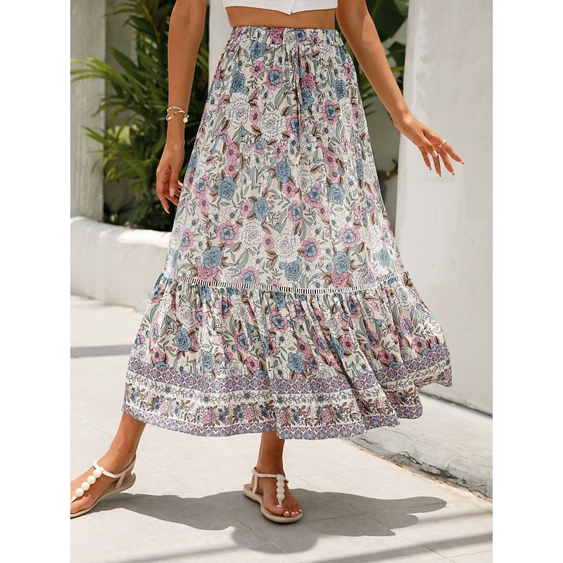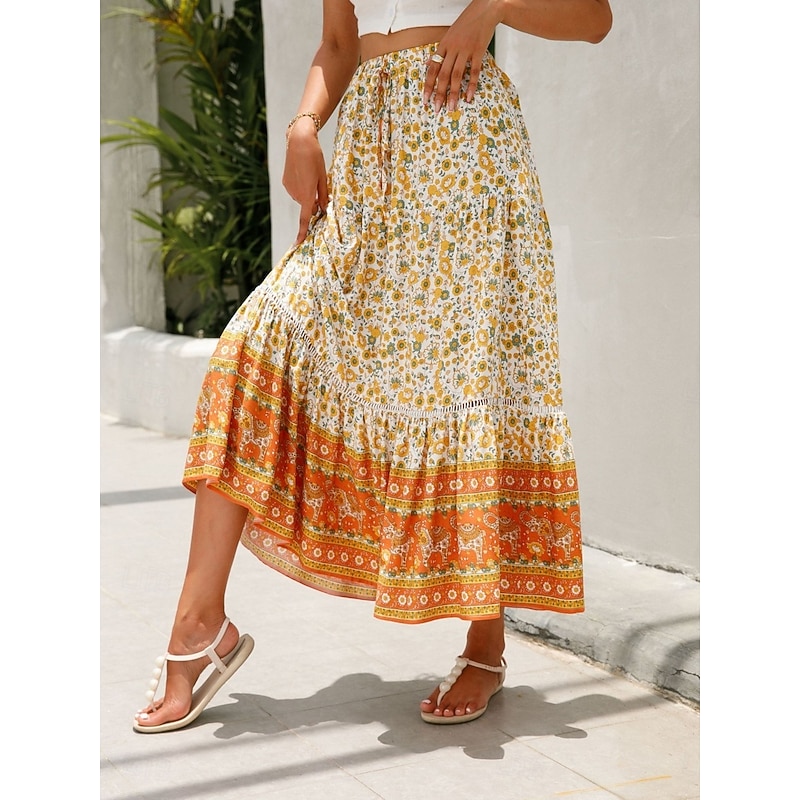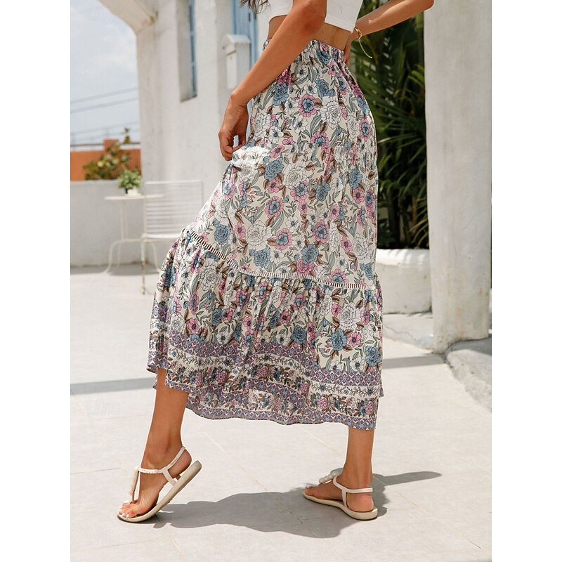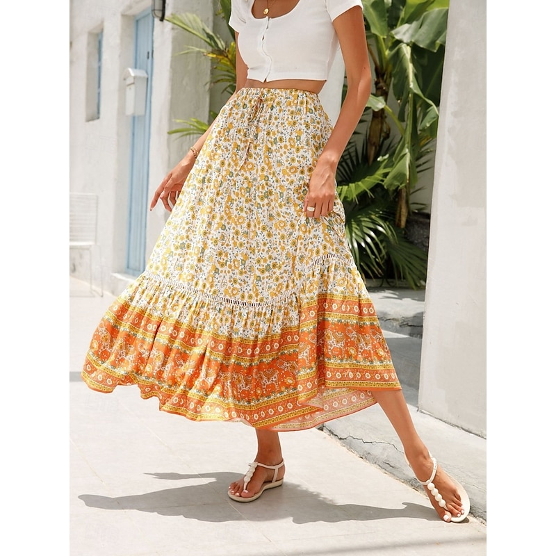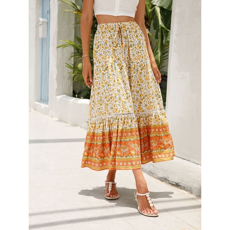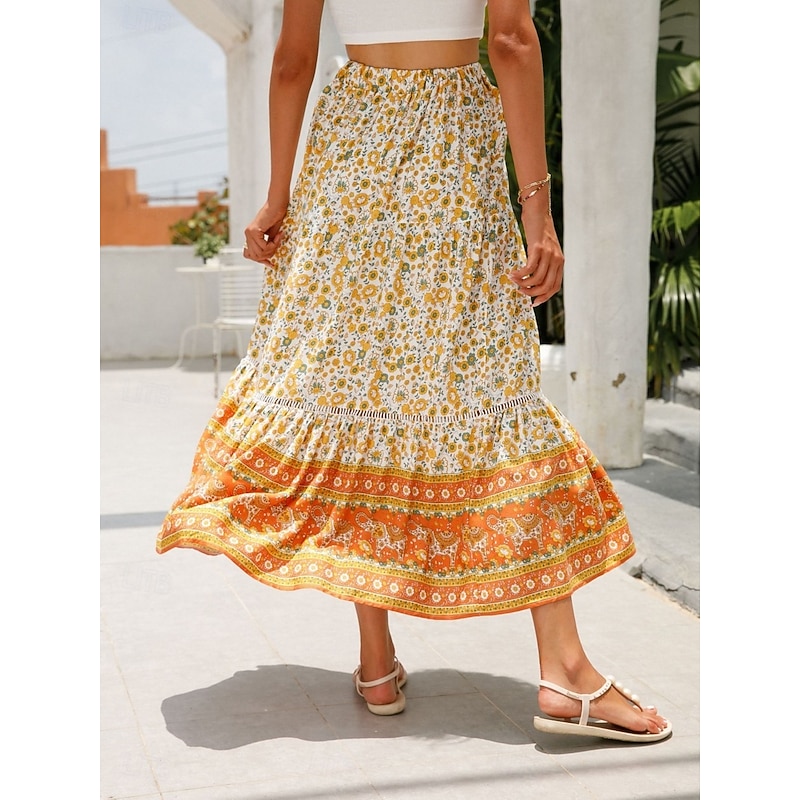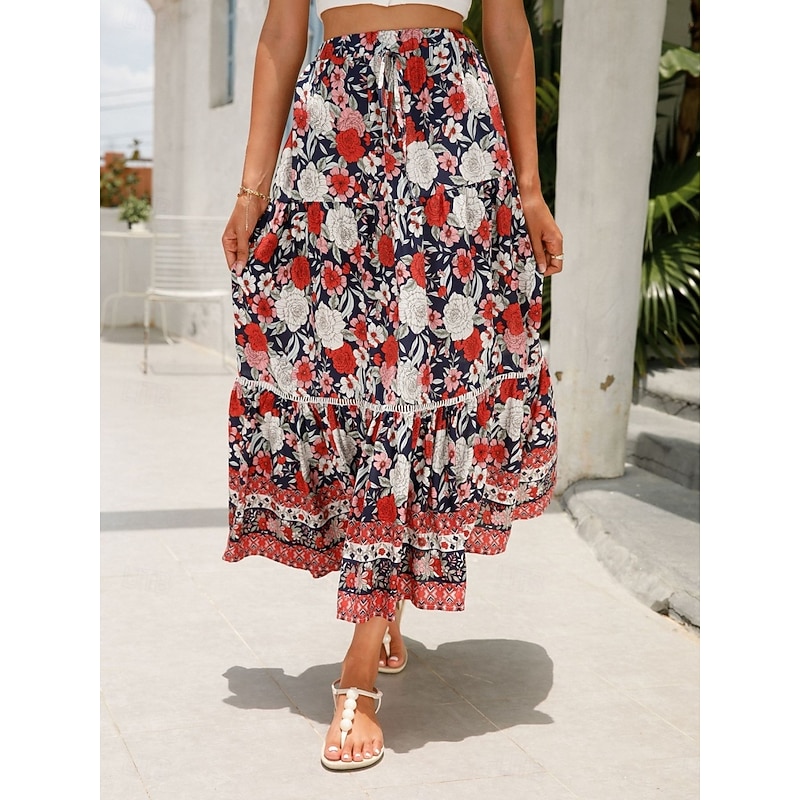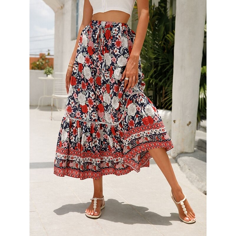 This Women's Skirt A Line Bohemia Casual Midi High Waist Skirts Floral Pocket Print Micro-elastic Street Daily Red Orange Dark Blue Apricot Summer Rayon combines elegant design with practical functionality. Every detail has been carefully considered to ensure you get the finest possible experience. The supreme construction means this product will serve you well for years to come.