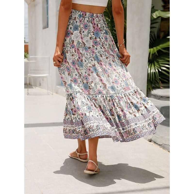 Why Choose Women's Skirt A Line Bohemia Casual Midi High Waist Skirts Floral Pocket Print Micro-elastic Street Daily Red Orange Dark Blue Apricot Summer Rayon?