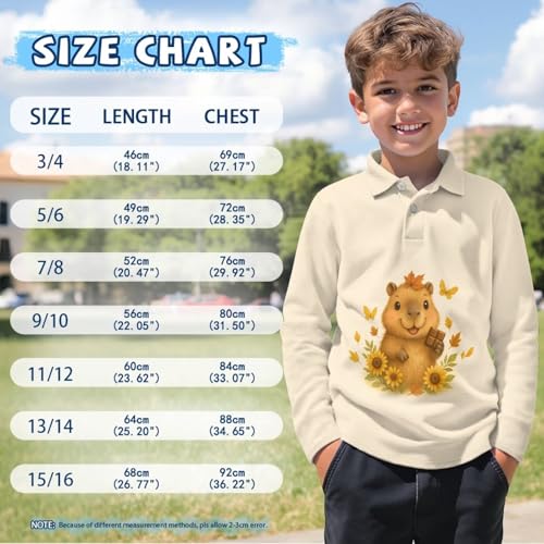Fabric type: 100% PolyesterCare instructions: Machine WashOrigin: ImportedClosure type: Pull OnFEATURES: Kid's long sleeve graphic shirt with button and collar, suitable for boys and girls 3 to 16 yearsMATERIAL: Made of polyester and spandex, it is not prone to wrinkling, dries quickly, absorbs sweat and is elasticOCCASION: It is suitable for wearing during sports, school, leisure and play times, such as playing golf, daily play and festive special outfitsBUY FOR: As elders, you can buy it for your relatives' children. As parents, you can buy it for your own children to enrich their wardrobesTIPS: 1.SizeοΌ3-4, 5-6, 7-8, 9-10, 11-12, 13-14, 15-16, You can choose 2.Machine washable 3.Size data an error within 1 to 2cm is considered a normal phenomenon. The picture display effect is for reference only 4.Due to objective factors such as production batches and machinery equipment, it is inevitable faultless for everyday use. premium materials and excellent craftsmanship ensure long-lasting durability.