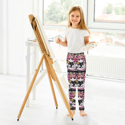 Boccsty Pink and White Axolotl Playing Softball Girls Leggings Kids Yoga Pants Dance Active Tights 4T