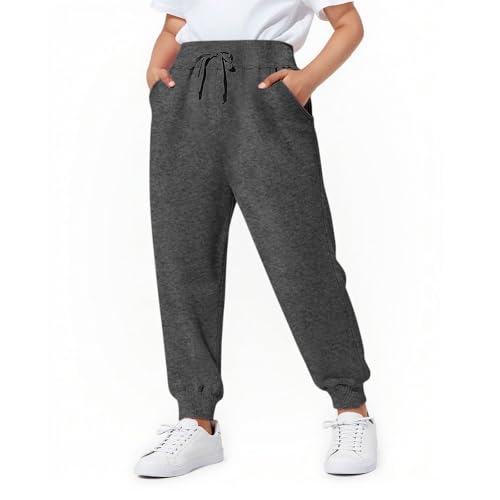 Kids Basic Solid Joggers Sweatpants Elastic Waist Casual Athletic Pants with Pockets for Girls Boys 7-15 Years