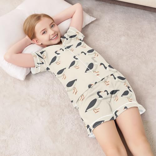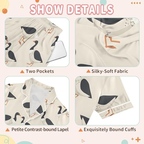 Why Choose ALAZA Black Goose Duck Satin Pajamas Set Short Sleeve Button Down Sleepwear Summer Pjs 2 Piece?