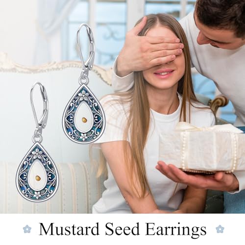 Mustard Seed Earrings Sterling Silver Mustard Seed Faith Teardrop Dangle Earrings Christian Jewelry Gifts for Women