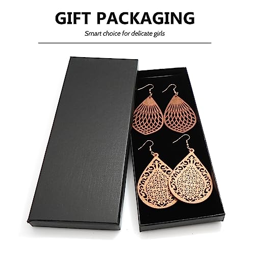 Wood Earrings for Women Natural Wooden Drop Dangle Earring 2 Pairs Lightweight Waterdrop Earring Set