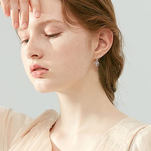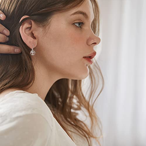 Round Shape Leverback Earrings, 925 Sterling Silver Hypoallergenic Tree of Life Drop Dangling Earrings for Women for Sensitive Ears for Women Girlfriend