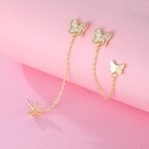 More information about Reffeer Solid 925 Sterling Silver Double Holes CZ Butterfly Chain Stud Earrings Two Butterfly Cuff Climber Earrings for Women Teen