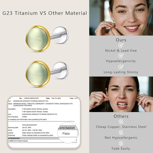 trending ! Limerencia Hypoallergenic Earrings for Sensitive Ears - G23 Titanium Round Cat's Eye Flat Back Stud Earrings, Cartilage Stone Pierced Earrings for Women Men Gift