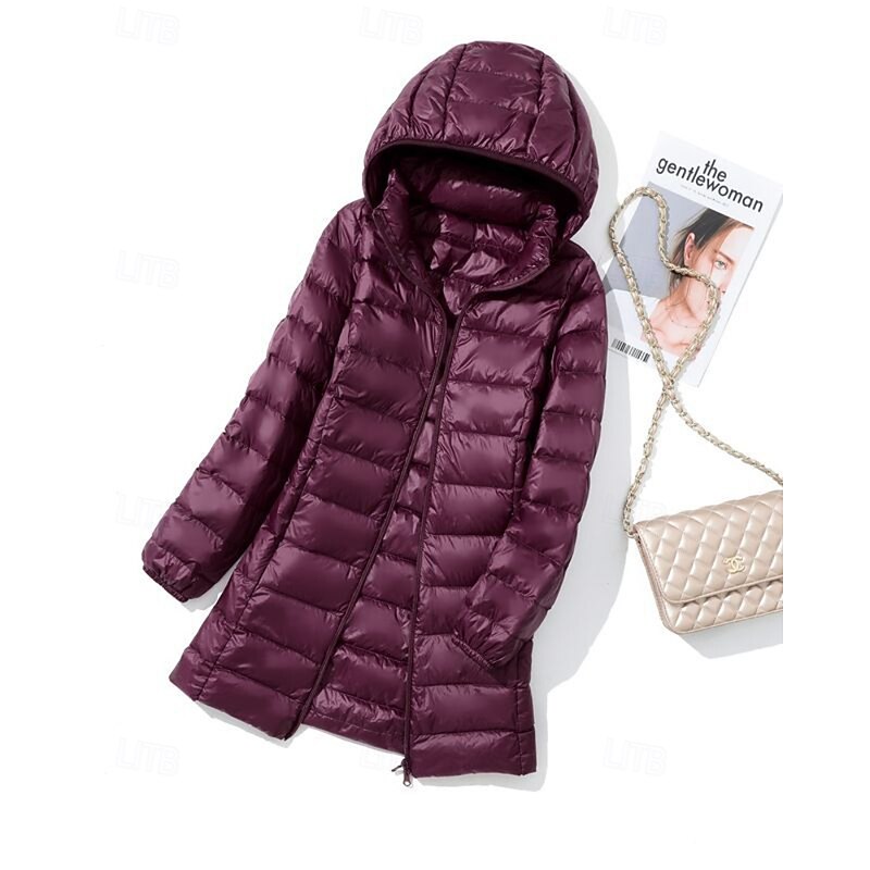 This Women's Down Jacket Coat Warm cozy Zipper Pocket Fashion Plain Holiday Going out Casual Daily Weekend Zipper Long Hooded Regular Fit Long Sleeve Outerwear Black Blue Purple Fall Winter combines elegant design with practical functionality. Every detail has been carefully considered to ensure you get the best possible experience. The first-class construction means this product will serve you well for years to come.