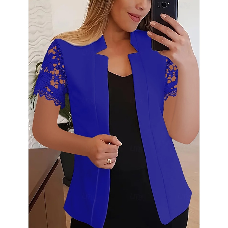 trending ! Women's Blazer pleasant Breathable Lace Fashion new-age Plain Work Daily Regular Stand Collar Regular Fit Short Sleeves Outerwear Black White Pink Summer
