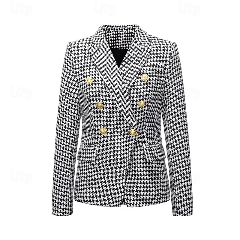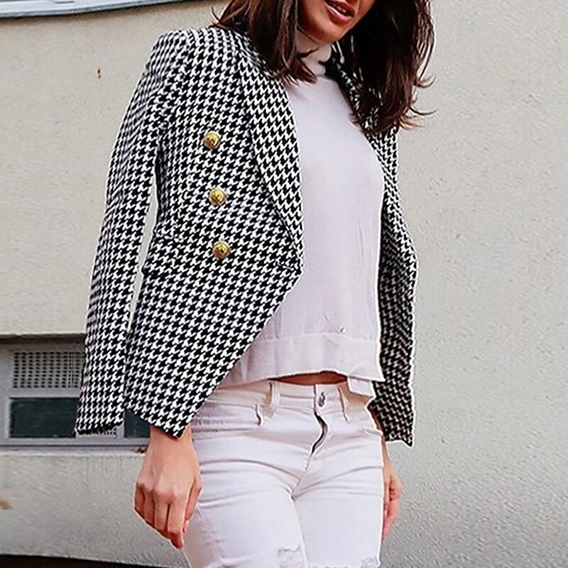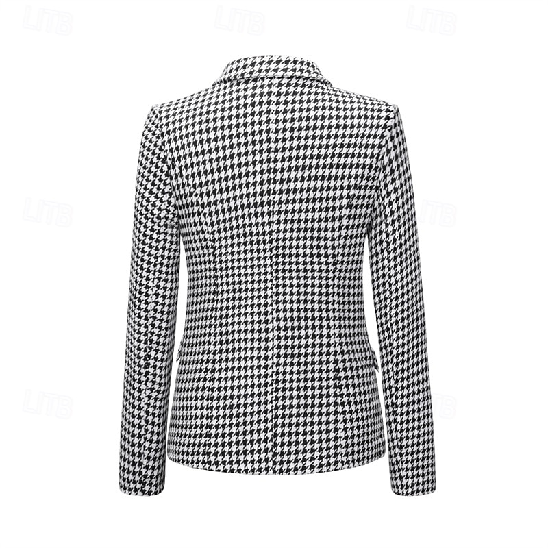 Why Choose Women's Blazer pleasant Buttons Elegant Fashion Outdoor Plain Going out Casual Daily Weekend Cardigan Regular Lapel Regular Fit Long Sleeve Outerwear Black And White Black White Spring Fall?