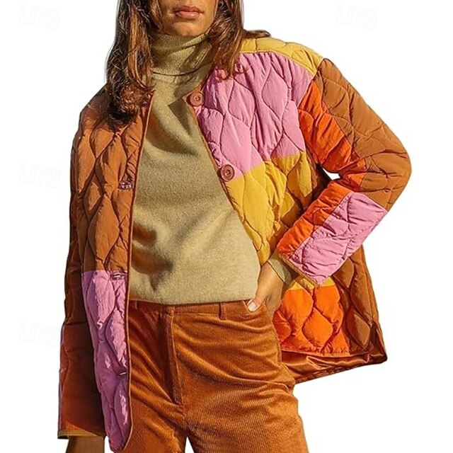 This Women's Casual Jacket cozy Patchwork Pocket Buttons Casual Color Block Holiday Going out Single Breasted Regular Crewneck Regular Fit Long Sleeve Outerwear Black Orange Green Fall Winter combines elegant design with practical functionality. Every detail has been carefully considered to ensure you get the best possible experience. The first-class construction means this product will serve you well for years to come.
