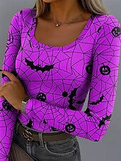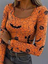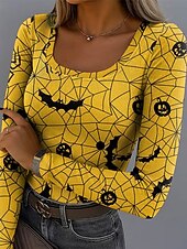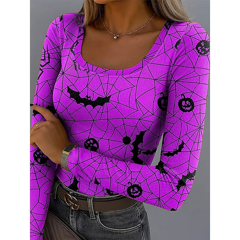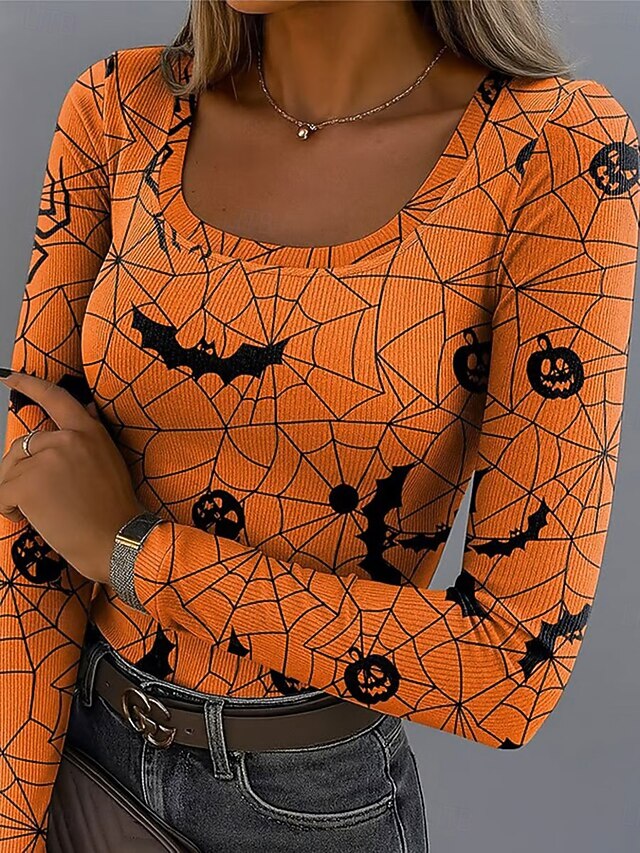 This Halloween Women's T Shirt Spider Web Graphic Vintage sophisticated Classic Long Sleeve Square Neck Regular Tops Daily Print Yellow Purple Orange Green Gray Summer Spring Fall combines elegant design with practical functionality. Every detail has been carefully considered to ensure you get the best possible experience. The superior construction means this product will serve you well for years to come.