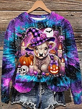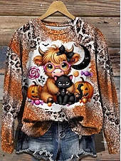 More information about Halloween Women's Pullover Sweatshirt Graphic Cow Halloween Fashion Casual Long Sleeve Crew Neck Regular Tops Street Dailywear Casual Print Black Purple Brown Fall Winter