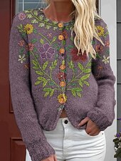 This Women's Cardigan Fashion Daily Casual Floral Graphic Ribbed Crew Neck Buttons Print Long Sleeve Regular Tops Knit Outdoor Daily Date Purple Fall Winter combines elegant design with practical functionality. Every detail has been carefully considered to ensure you get the foremost possible experience. The superior construction means this product will serve you well for years to come.