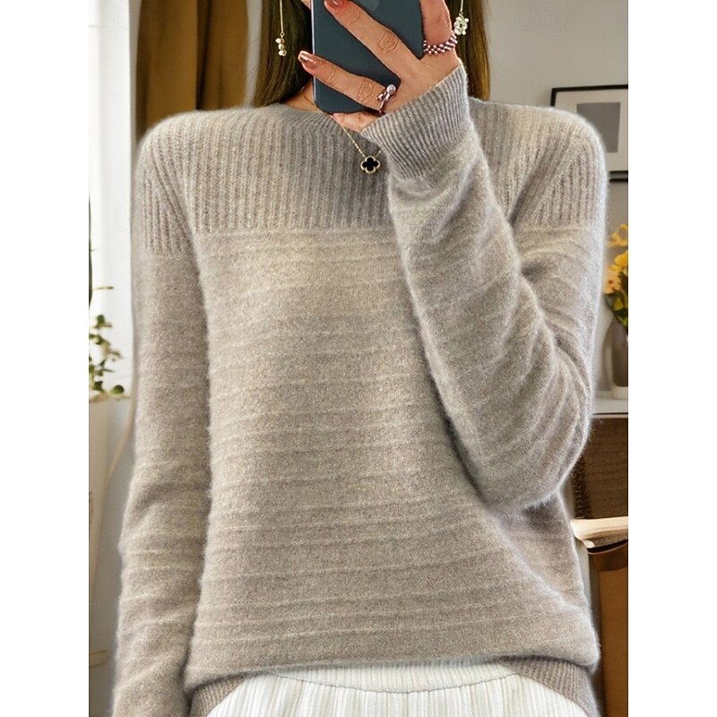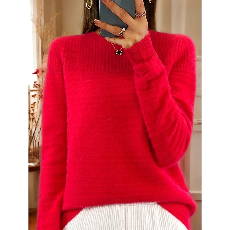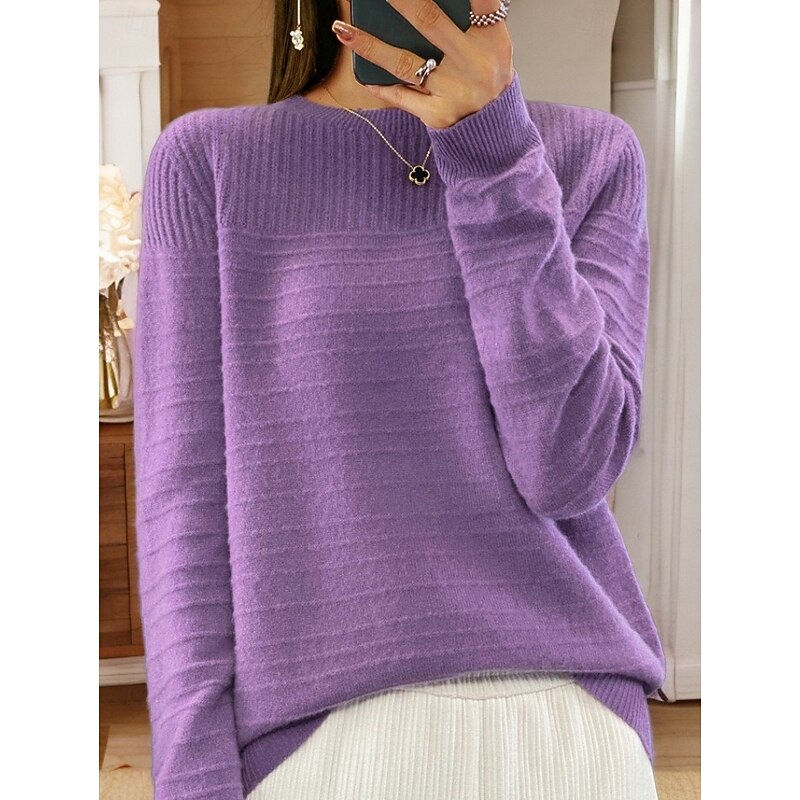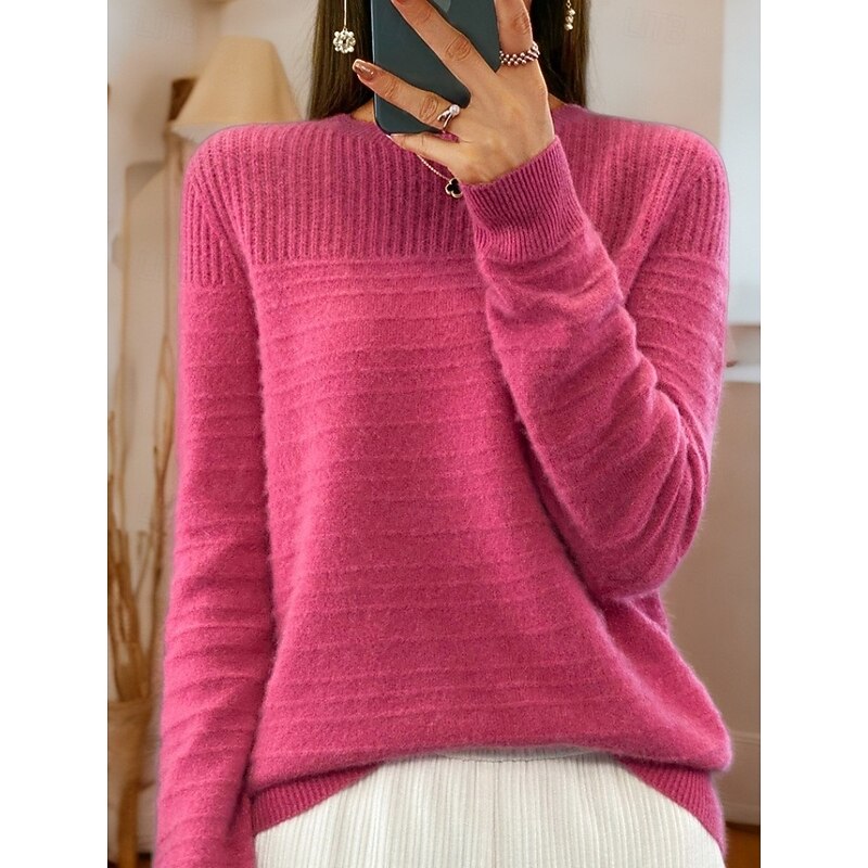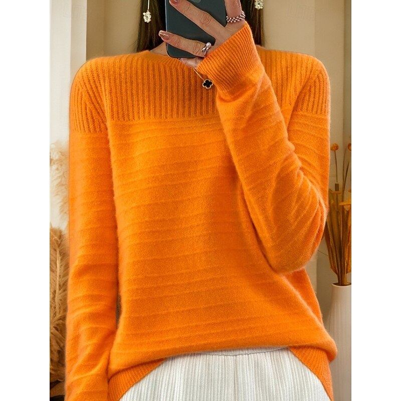 Highlights [Fabric] : Crafted from high-quality polyester, this women's sweater offers a soft and stretchy feel, ensuring a comfortable fit for everyday wear. Its knitted fabric provides warmth and coziness, making it an ideal choice for cooler seasons. [Fit] : Featuring a regular fit design, the sweater has a classic crew neck and long sleeves. The straight cut offers a relaxed look that is both contemporary and comfortable, perfect for daily wear. [Design Highlights] : This pullover sweater is enhanced with subtle horizontal ribbed detailing, adding texture and visual interest. Its pure color design is available in multiple shades including Blue, Orange, Red, Pink, Beige, Camel, Purple, Fuchsia, Mint Green, and Fruit Green, providing a versatile and sophisticated addition to any wardrobe. [Occasions] : Suitable for a variety of occasions, this sweater is perfect for holiday gatherings, daily activities, or relaxing at home. Its versatility makes it ideal for both casual and semi-casual settings, offering charm and ease during spring, fall, and winter. [Size Information] : Available in sizes S, M, L, and XL, this sweater follows standard sizing guidelines. Select your usual size for a comfortable fit. Perfect for everyday use. excellent materials and excellent craftsmanship ensure long-lasting durability.