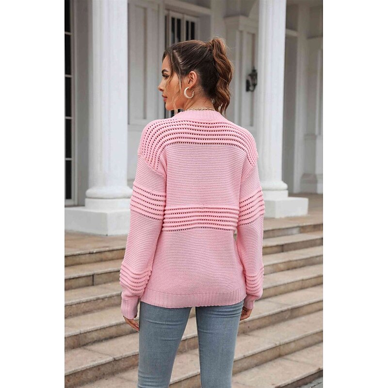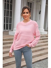 Women's Sweater chic Solid Color Crew Neck Braided Long Sleeve Regular Tops Knit Work White Pink Fall Winter