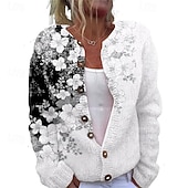 More information about Women's Sweater Cardigan Fashion Streetwear Daily Floral Animal Ribbed Open Front Knitted Print Long Sleeve Long Tops Knit Holiday Going out Weekend Black White Fall Winter