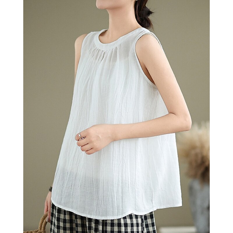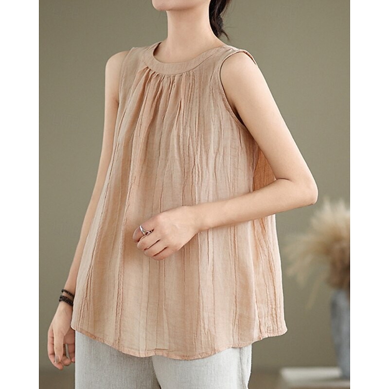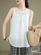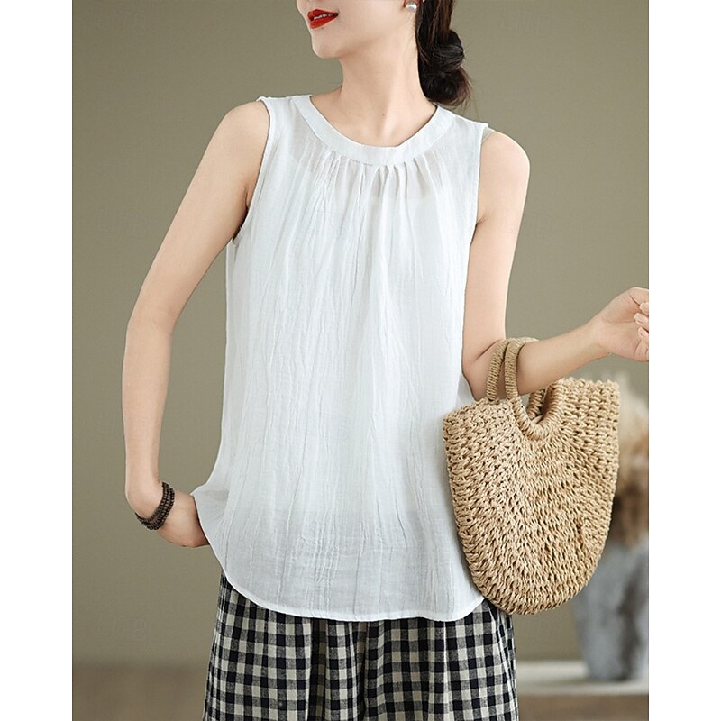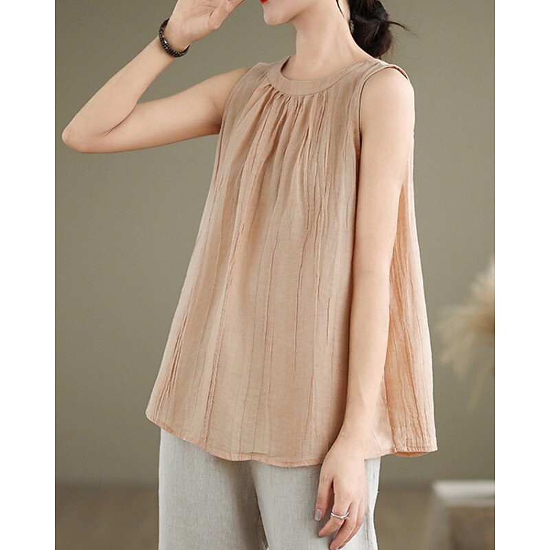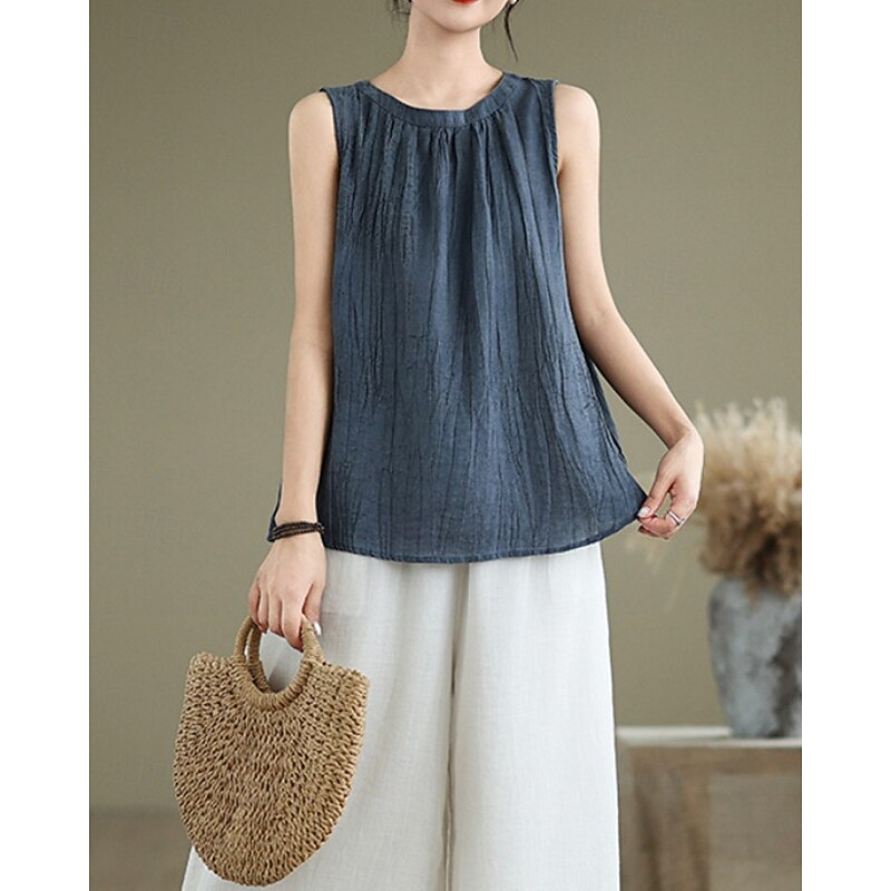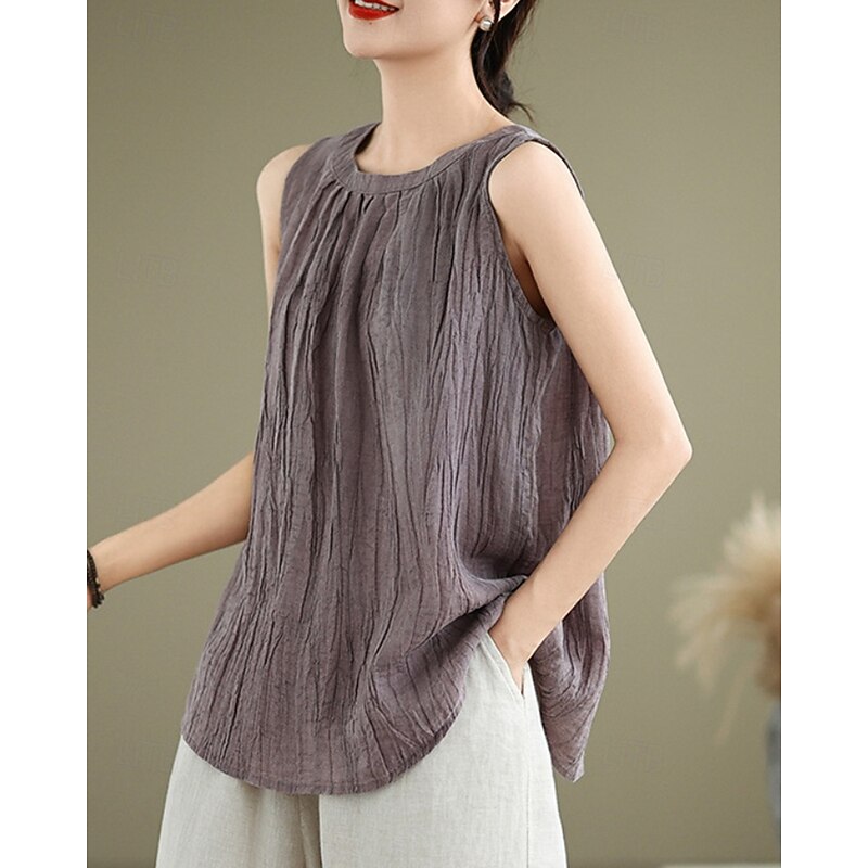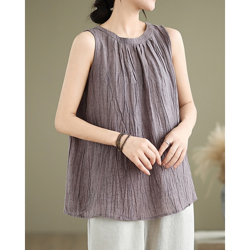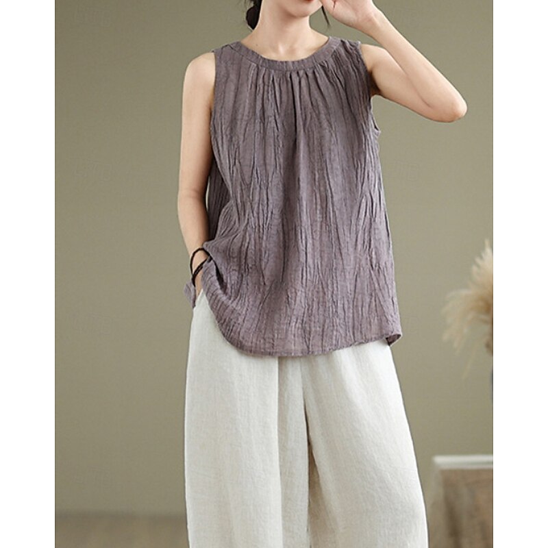 Why Choose Women's Cotton Linen Shirts Plain latest-age Casual Sleeveless Crew Neck Regular Tops Holiday Going out White Pink Navy Blue Purple Khaki Summer?