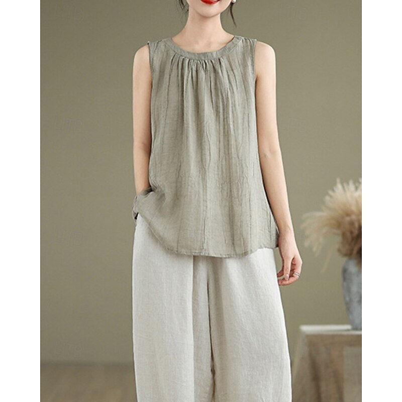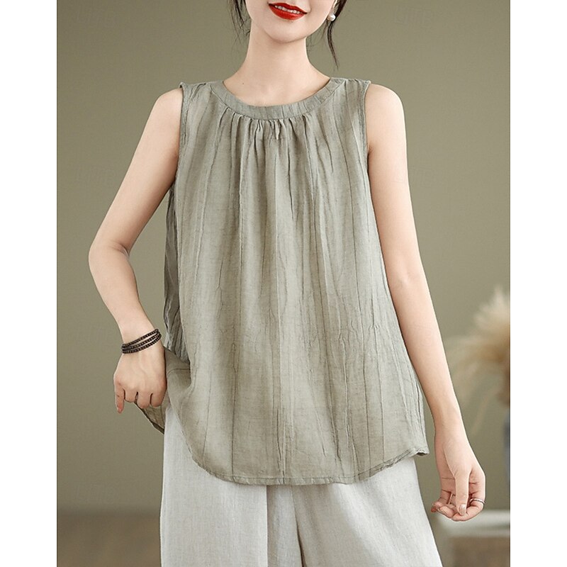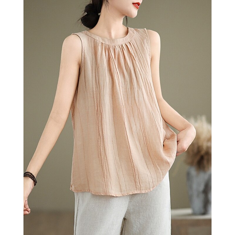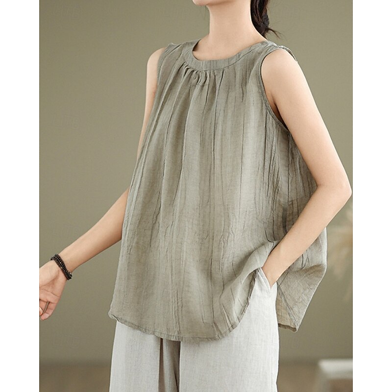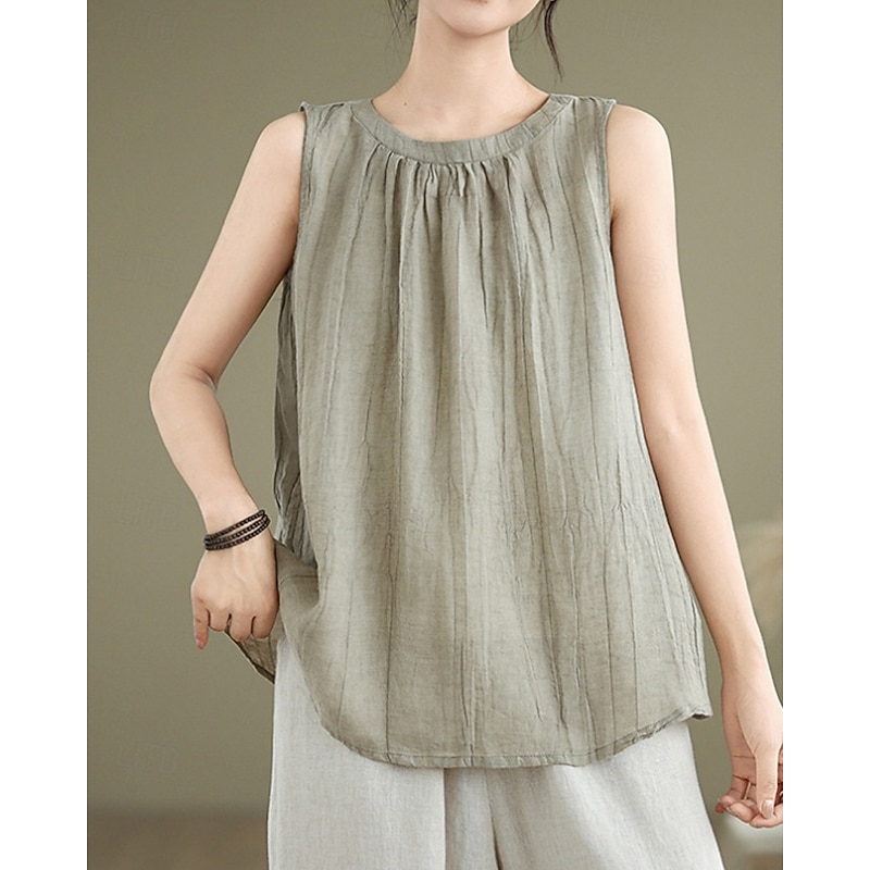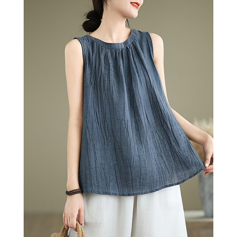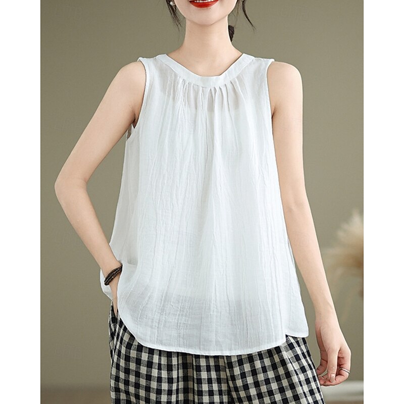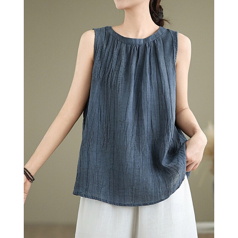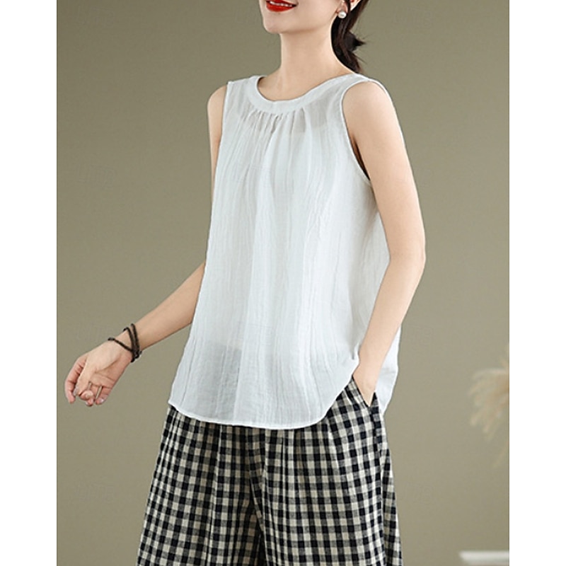 Why Choose Women's Cotton Linen Shirts Plain latest-age Casual Sleeveless Crew Neck Regular Tops Holiday Going out White Pink Navy Blue Purple Khaki Summer?