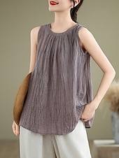 This Women's Cotton Linen Shirts Plain contemporary Casual Sleeveless Crew Neck Regular Tops Holiday Going out White Pink Navy Blue Purple Khaki Summer combines elegant design with practical functionality. Every detail has been carefully considered to ensure you get the best possible experience. The supreme construction means this product will serve you well for years to come.