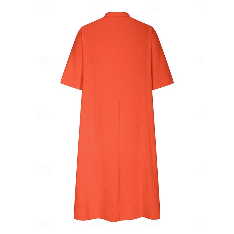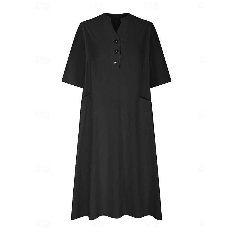 More information about Women's Midi Dress Cotton Linen Dresses Basic Casual Vacation Daily Regular Fit Plain 3/4 Length Sleeve Notched Neck Black Red Purple Light Blue Summer