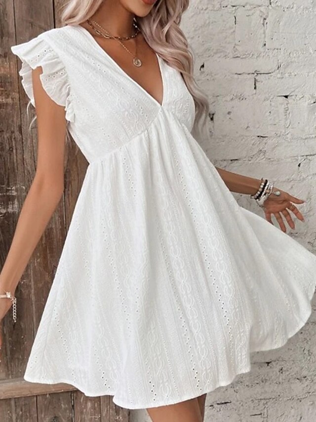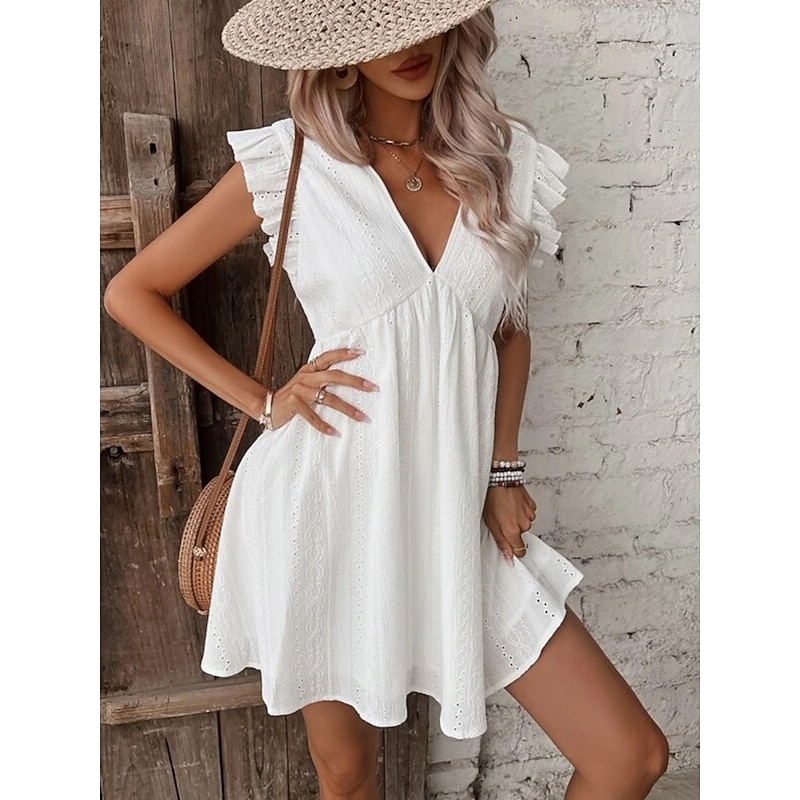 Why Choose Women's Mini Dress Cotton Linen Dresses Basic Casual Vacation Daily Regular Fit Plain Sleeveless V Neck White Summer?