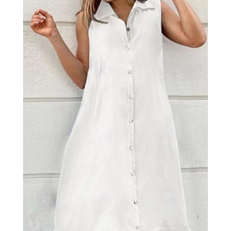 More information about Women's Long Dress Maxi Dress Shirt Dress Cotton Linen Dress timeless current Outdoor Holiday Going out Regular Fit Plain Sleeveless Shirt Collar Black White Summer