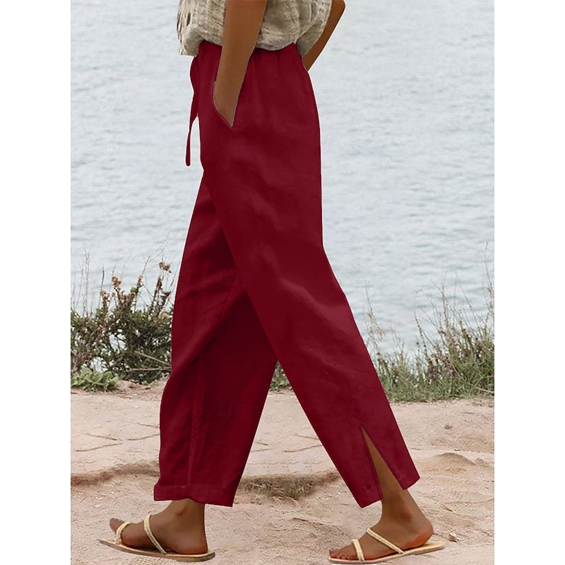 More information about Women's Cotton Linen Pants Solid Color Chinos Vacation Fashion Casual Long High Waist Plain Pocket Drawstring Comfort Outdoor Micro-elastic Vacation Street Daily Camel Wine Black White Summer