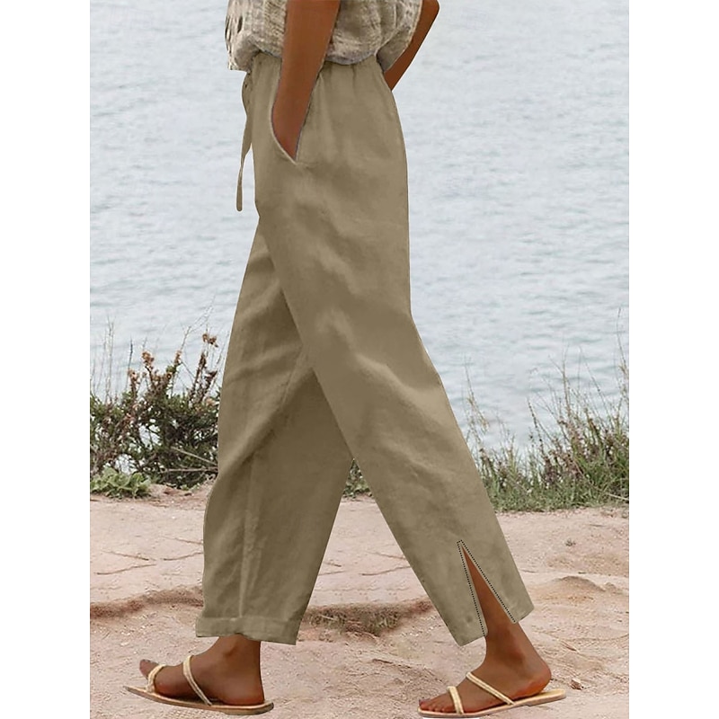 trending ! Women's Cotton Linen Pants Solid Color Chinos Vacation Fashion Casual Long High Waist Plain Pocket Drawstring Comfort Outdoor Micro-elastic Vacation Street Daily Camel Wine Black White Summer