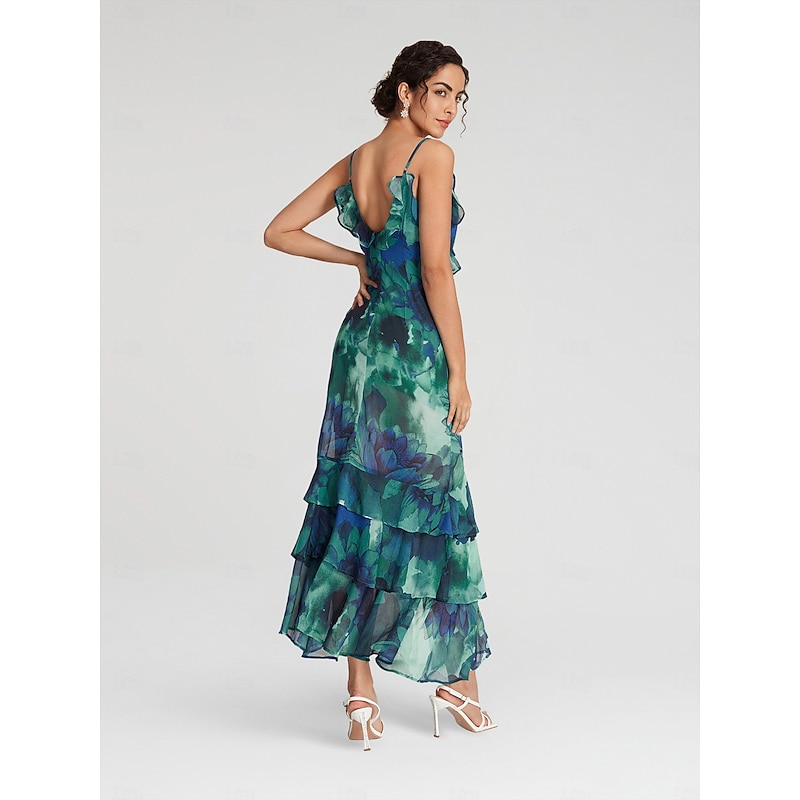 Why Choose Chiffon Wedding Guest Floral Ruffle Split Ends Sleeveless Maxi Dress?