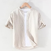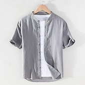 More information about Men's Shirt Chinese Collar Shirt Mandarin Collar Shirt Casual Shirt Button Up Shirt Cotton Shirt Plain Vacation Street White Navy Blue Khaki Light Grey Short Sleeve Grandad Collar Summer Clothing