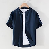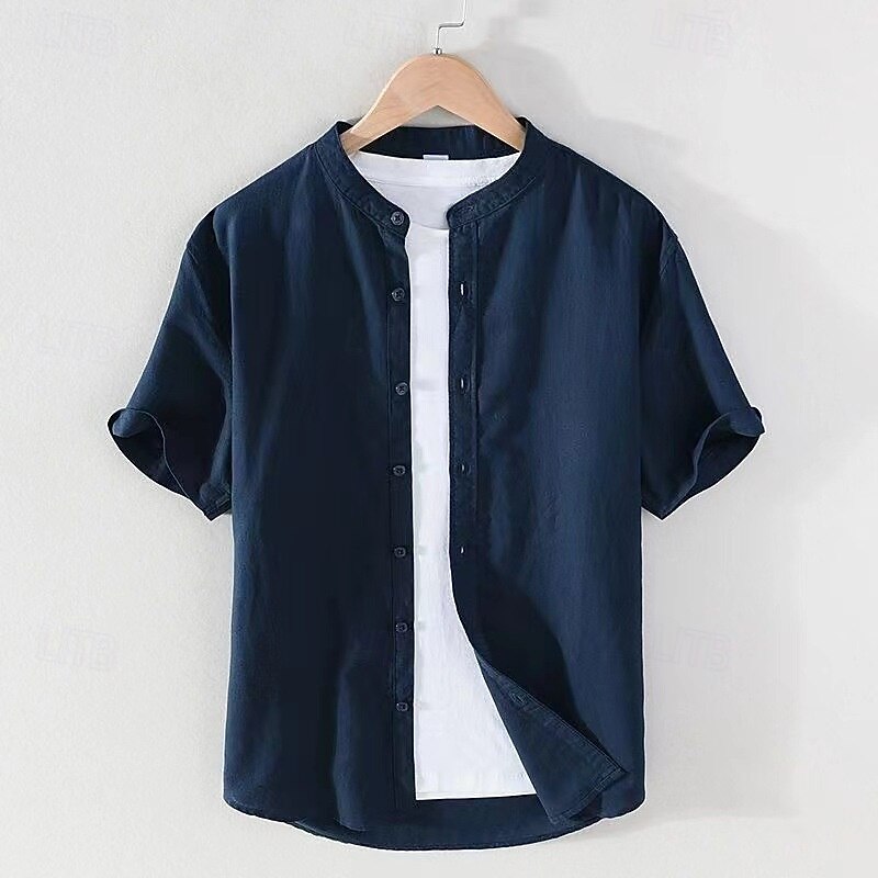 trending ! Men's Shirt Chinese Collar Shirt Mandarin Collar Shirt Casual Shirt Button Up Shirt Cotton Shirt Plain Vacation Street White Navy Blue Khaki Light Grey Short Sleeve Grandad Collar Summer Clothing