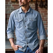 More information about Men's Shirt Summer Shirt Casual Shirt Beach Shirt Button Up Shirt Black khaki Gray Light Blue Long Sleeve Plain Lapel Vacation Hawaiian Front Pocket Clothing Apparel Fashion Casual supple