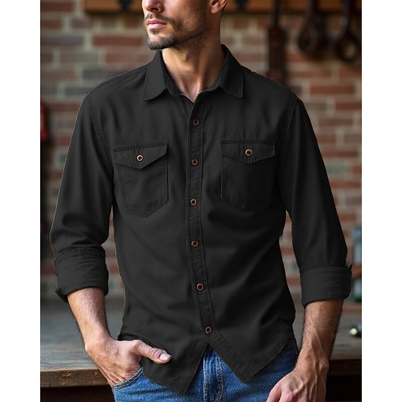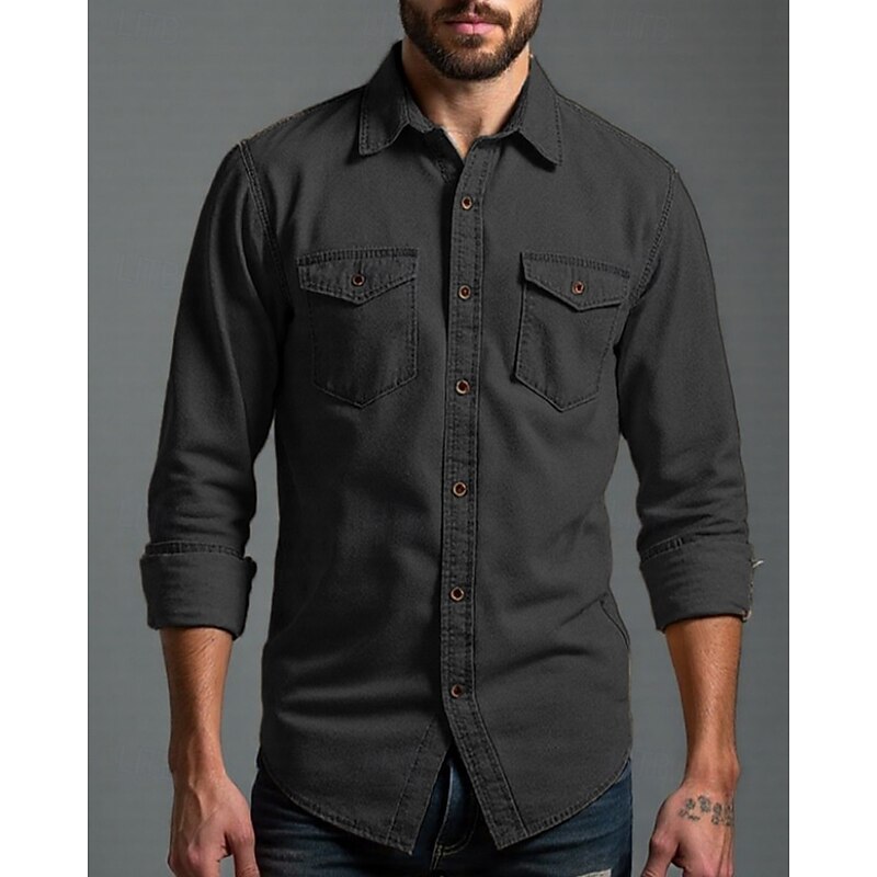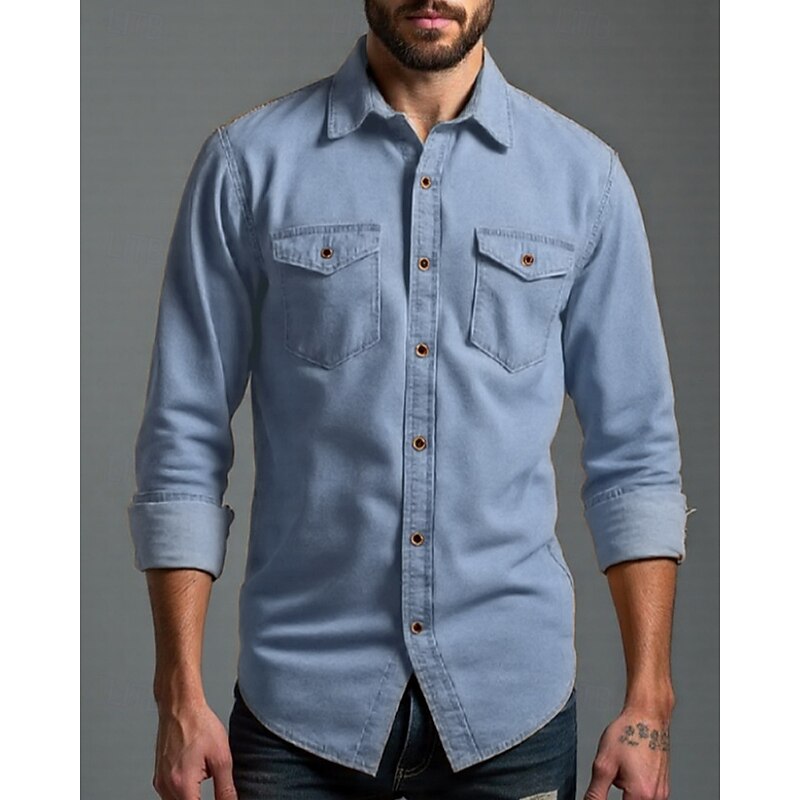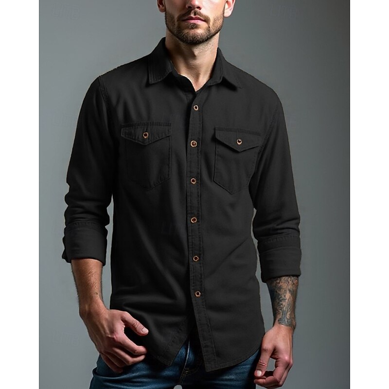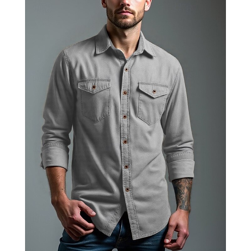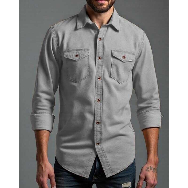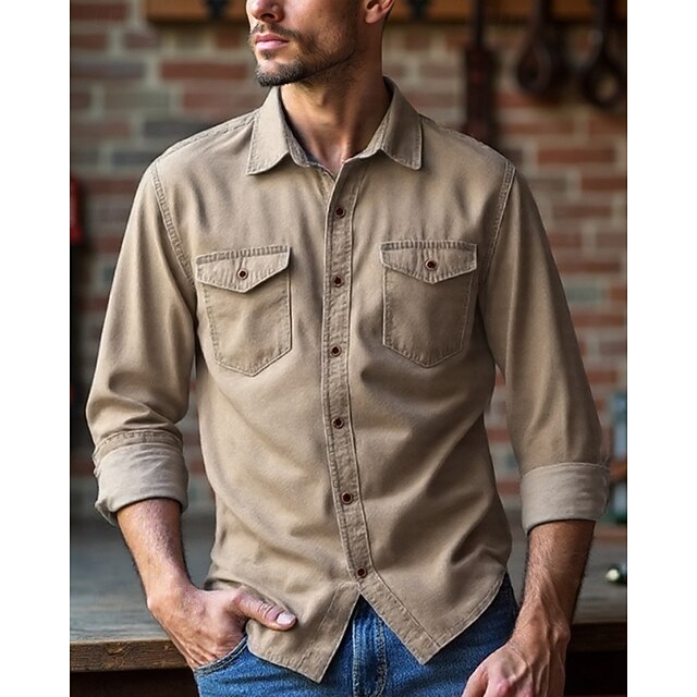 trending ! Men's Shirt Summer Shirt Casual Shirt Beach Shirt Button Up Shirt Black khaki Gray Light Blue Long Sleeve Plain Lapel Vacation Hawaiian Front Pocket Clothing Apparel Fashion Casual plush